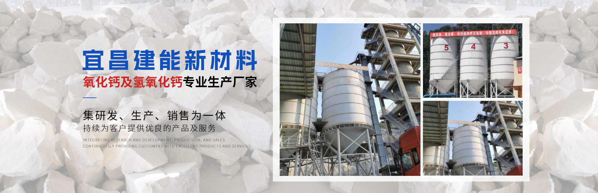 宜昌建能新材料有限公司 地址位于湖北省宜都市姚家店鎮(zhèn)油榨坪村二組,交通便利。我們公司是一家專業(yè)從事石灰研發(fā)、生產、銷售為一體的高科技生產型企業(yè)。公司采用優(yōu)良石頭資源,出產的石灰品質優(yōu)良,主要經營產品有石灰石、石灰塊、石灰石粉、氧化鈣、氫氧化鈣、母料專用灰鈣粉、建筑用石、方解石粉、重晶石粉等。 公司生產的石灰、碎石等產品,以優(yōu)良的產品質量,獲得了不少客戶的信任。 公司秉承“誠信、優(yōu)質、共贏”的經營理念,堅持用戶至上、服務優(yōu)先原則,用心解除客戶所憂;以科技服務和好的產品服務客戶;始終堅持以“想顧客之所想,急顧客之所急”的經營理念,不斷前行......